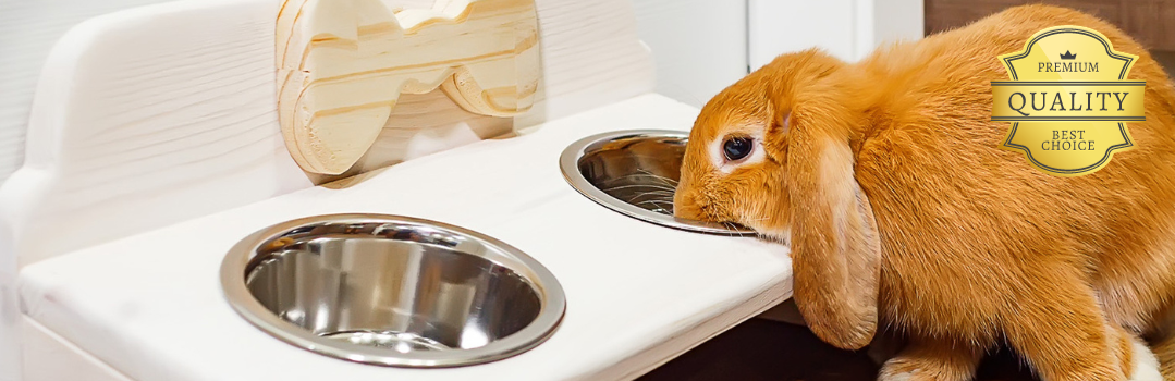 Lettiera coniglio con Cassetto scorrevole, mangiatoia fieno e borraccia acqua